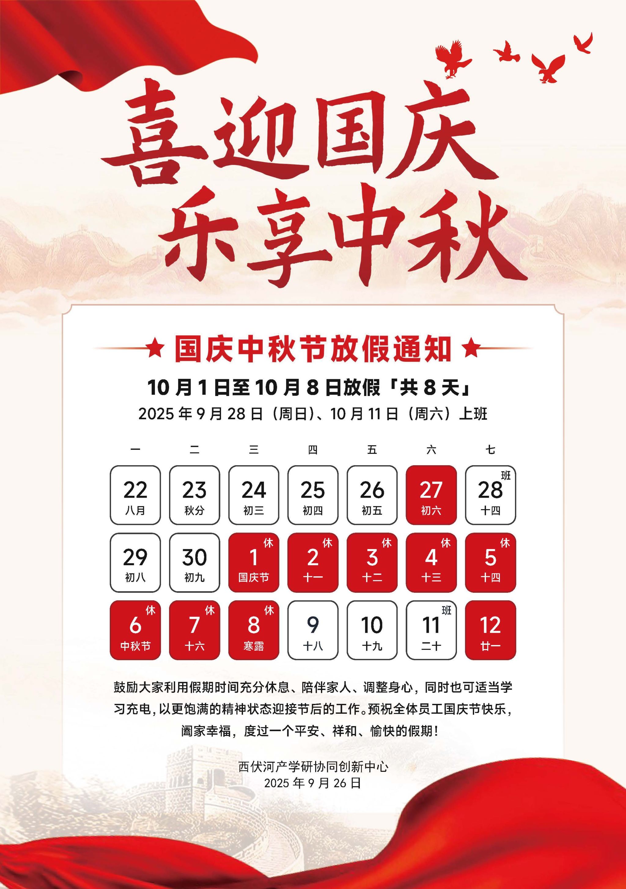 关于西伏河产学研协同创新中心国庆中秋放假的通知